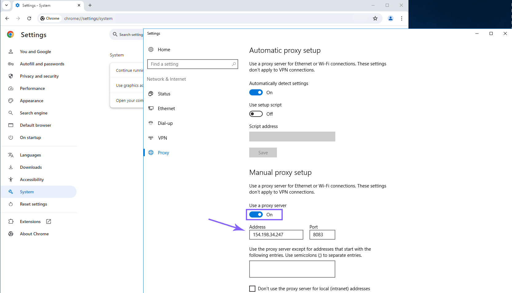 Setting up Proxies using Chrome Browser