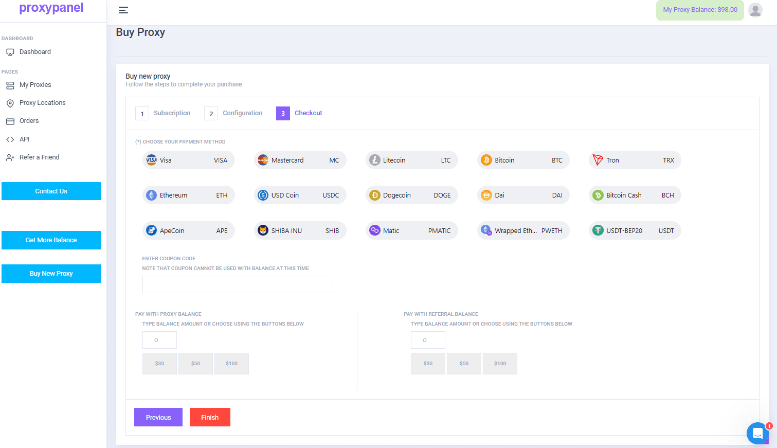 On ProxyPanel, you have two payment options: