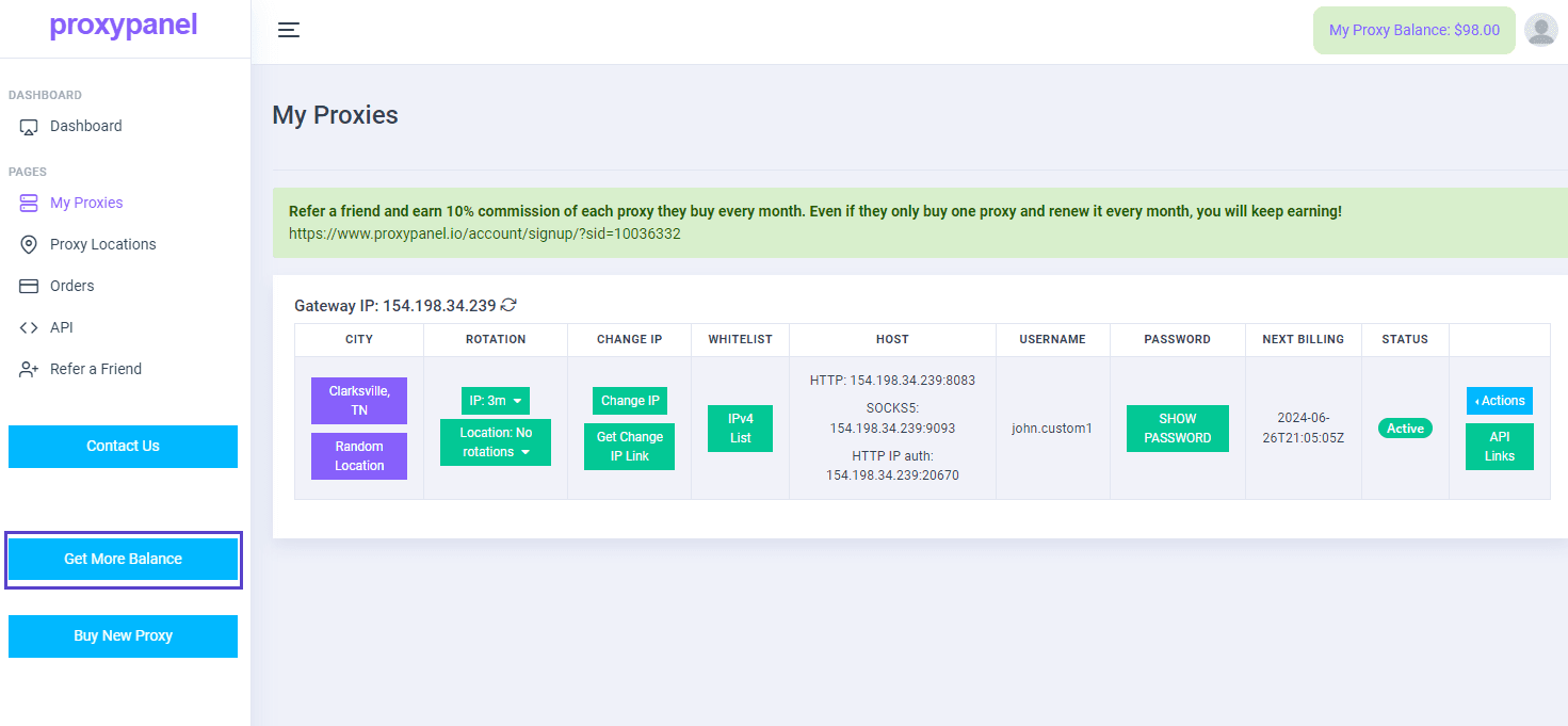 After signing in to your account, click on "Buy New Proxy" on the right side.